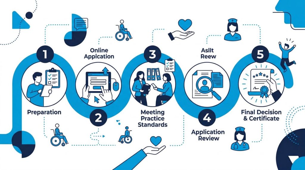 The registration steps 2025 timeline runs from 6 to 18 weeks from application submission to approval, with preparation potentially adding several additional weeks. Only approximately 9% of Commission eligibility decisions are made within the 21-day target timeframe. Furthermore, incomplete applications or complex registration group selections can extend the process significantly. Therefore, providers should plan for a minimum of three to six months from beginning preparation to receiving their certificate.