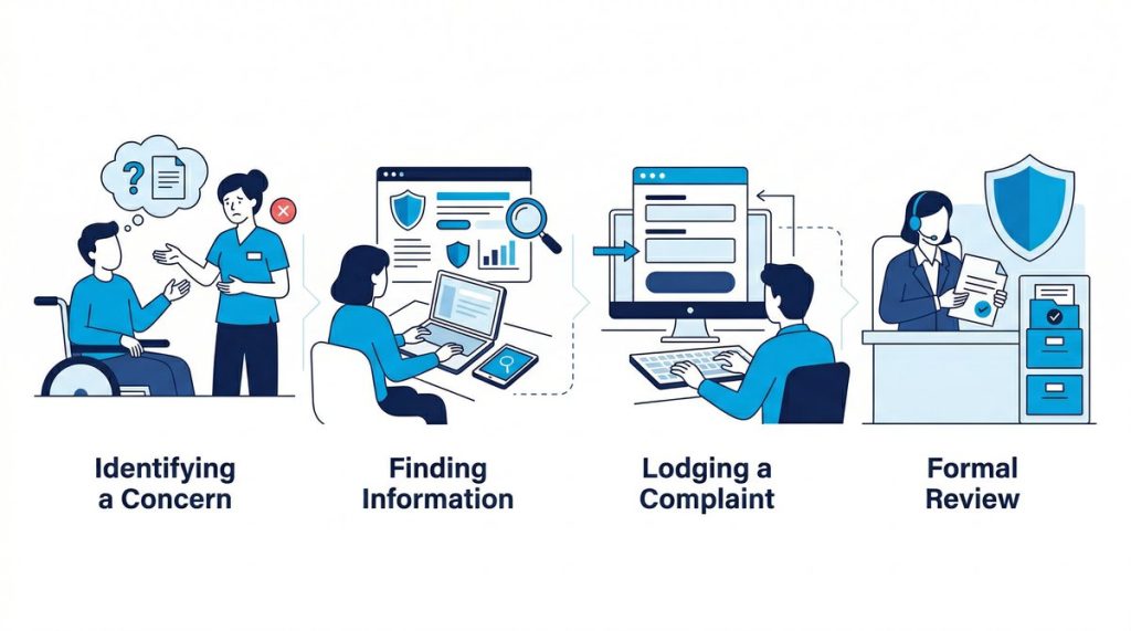 Reporting an NDIS code of conduct breach follows a clear sequence. Working through each step ensures your report is complete and gives the Commission the best chance of taking effective action.